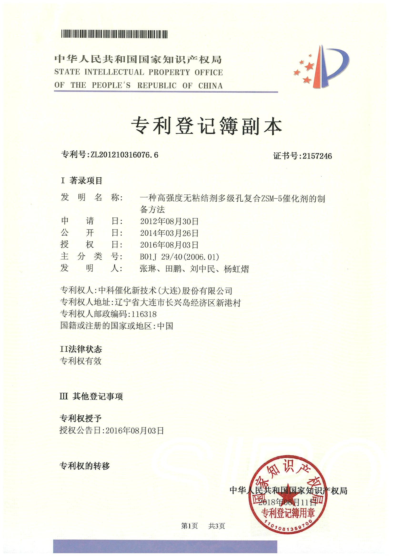 一種高強(qiáng)度無粘結(jié)劑多級(jí)孔復(fù)合ZSM-5催化劑的制備方法2157246