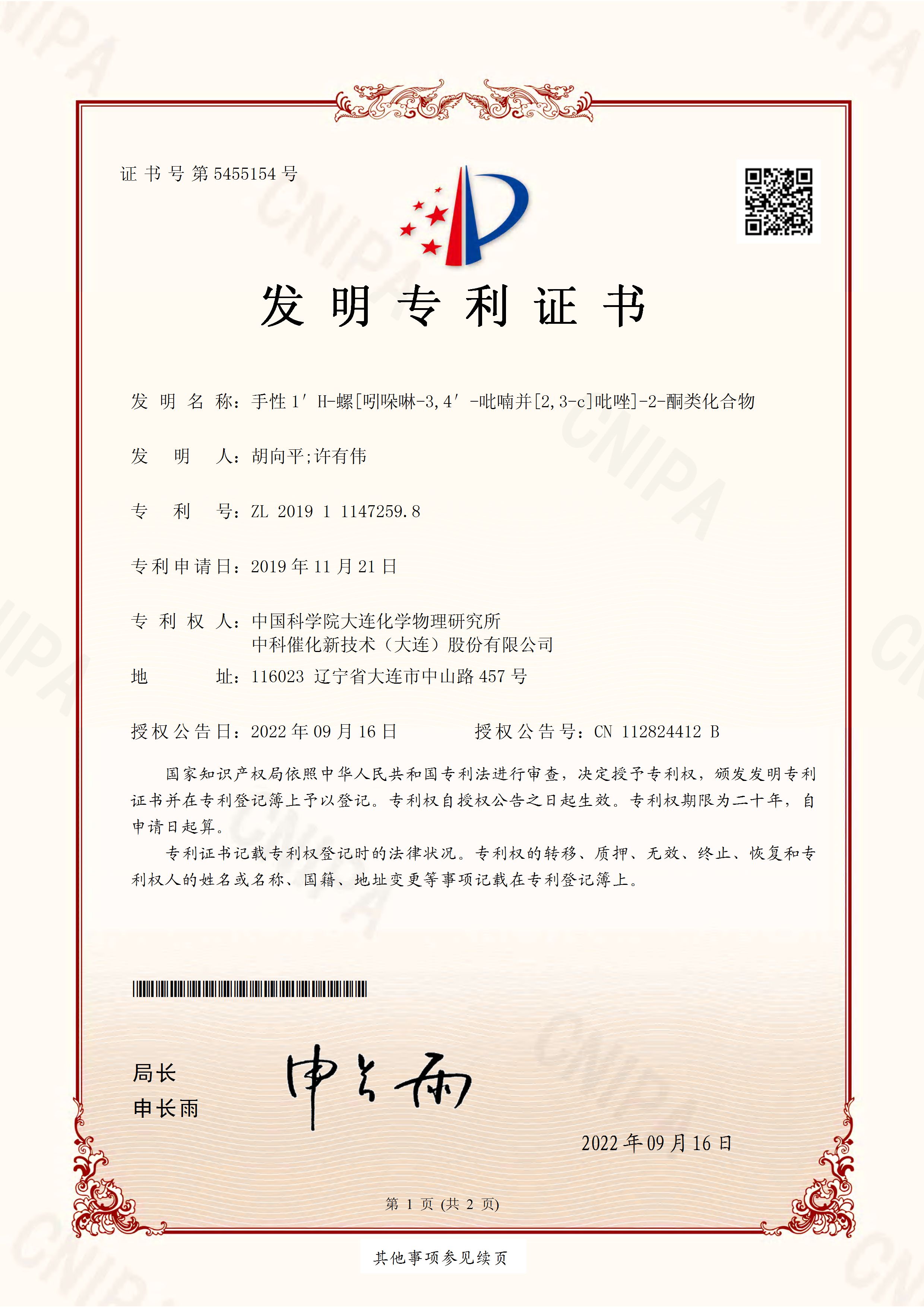 手性1′H-螺[吲哚啉-3,4′-吡喃并[2,3-c]吡唑]-2-酮類(lèi)化合物_頁(yè)面_1