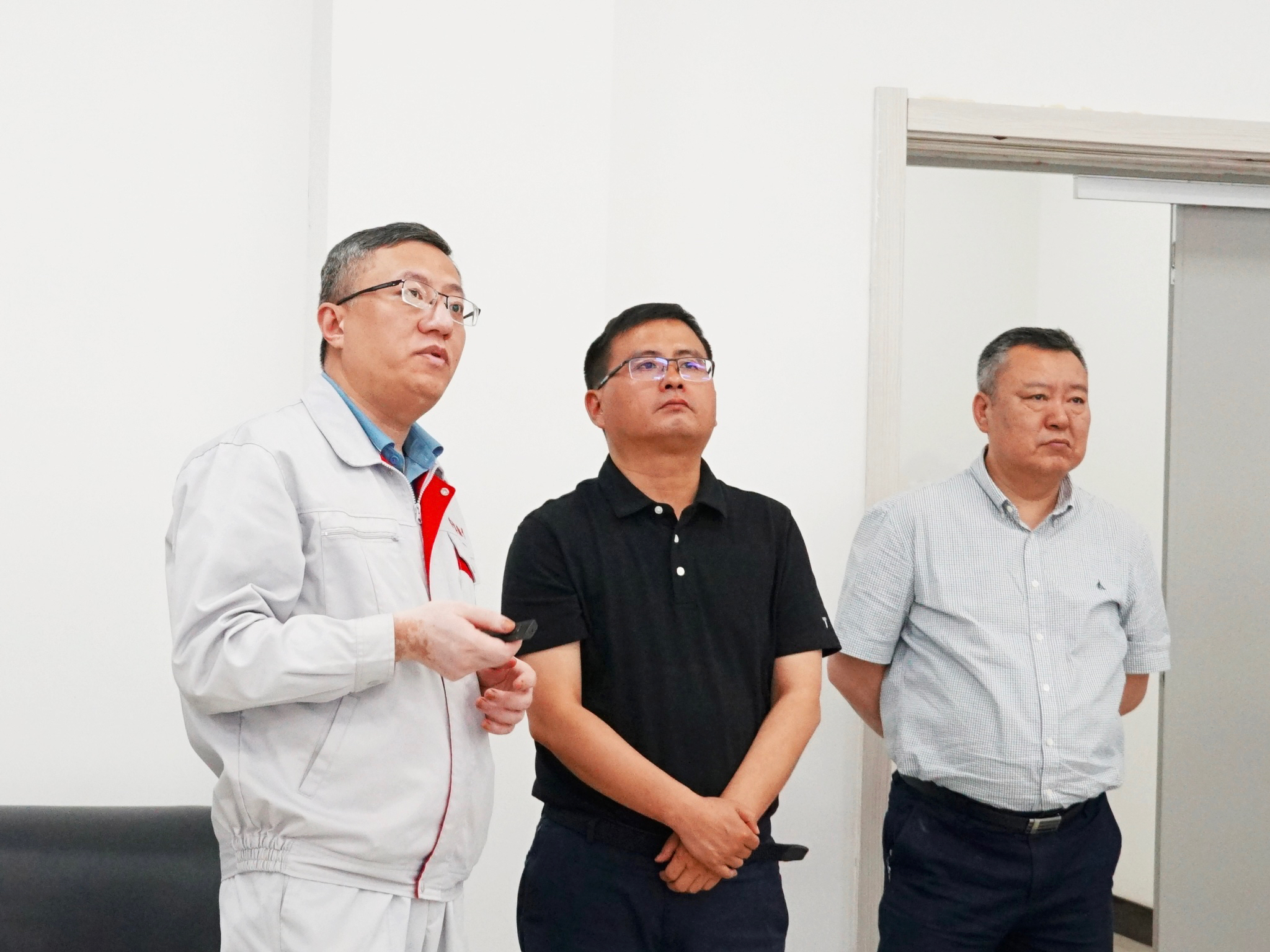 6月12日,遼寧省政府研究室副主任張勇一行到我司調(diào)研,長興島經(jīng)濟區(qū)管委會辦公室主任常劍峰、經(jīng)發(fā)局局長李海濤陪同調(diào)研,公司總經(jīng)理王亮及相關(guān)人員熱情接待并匯報工作。