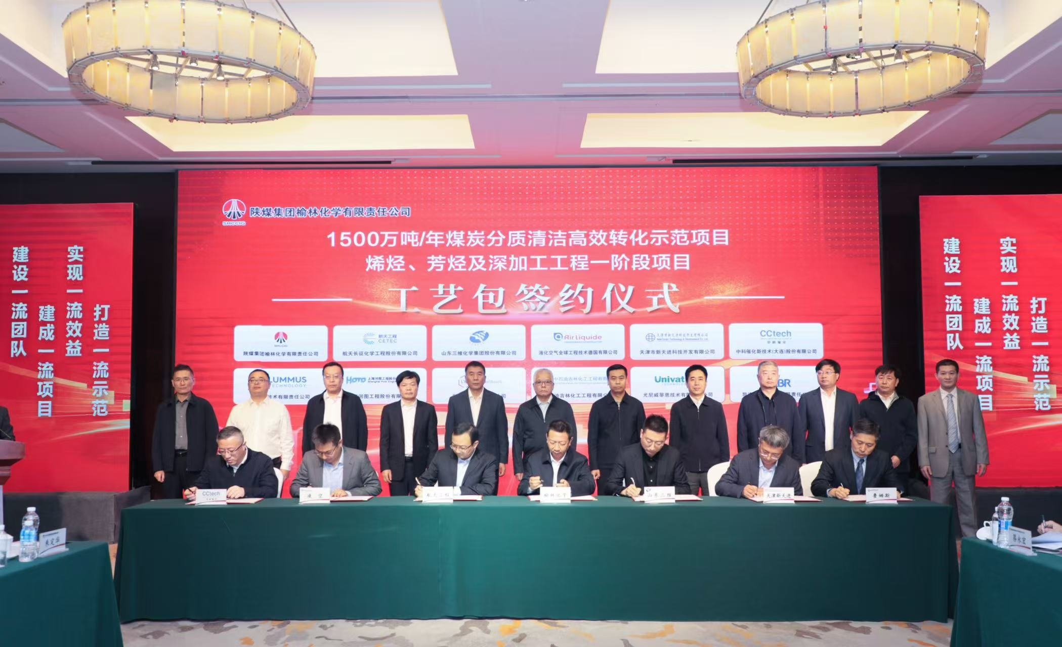 2024年10月15日,陜煤集團榆林化學有限責任公司1500萬噸/年煤炭分質(zhì)清潔高效轉化示范項目烯烴、芳烴及深加工工程一階段項目基礎設計開工會暨工藝包簽約儀式在西安召開。在該項目中,甲醇制烯烴裝置的專利技術許可、工藝包編制、技術服務、工程設計、專利專有設備及催化劑采購由我司與中石化廣州工程有限公司組成的聯(lián)合體成功中標。