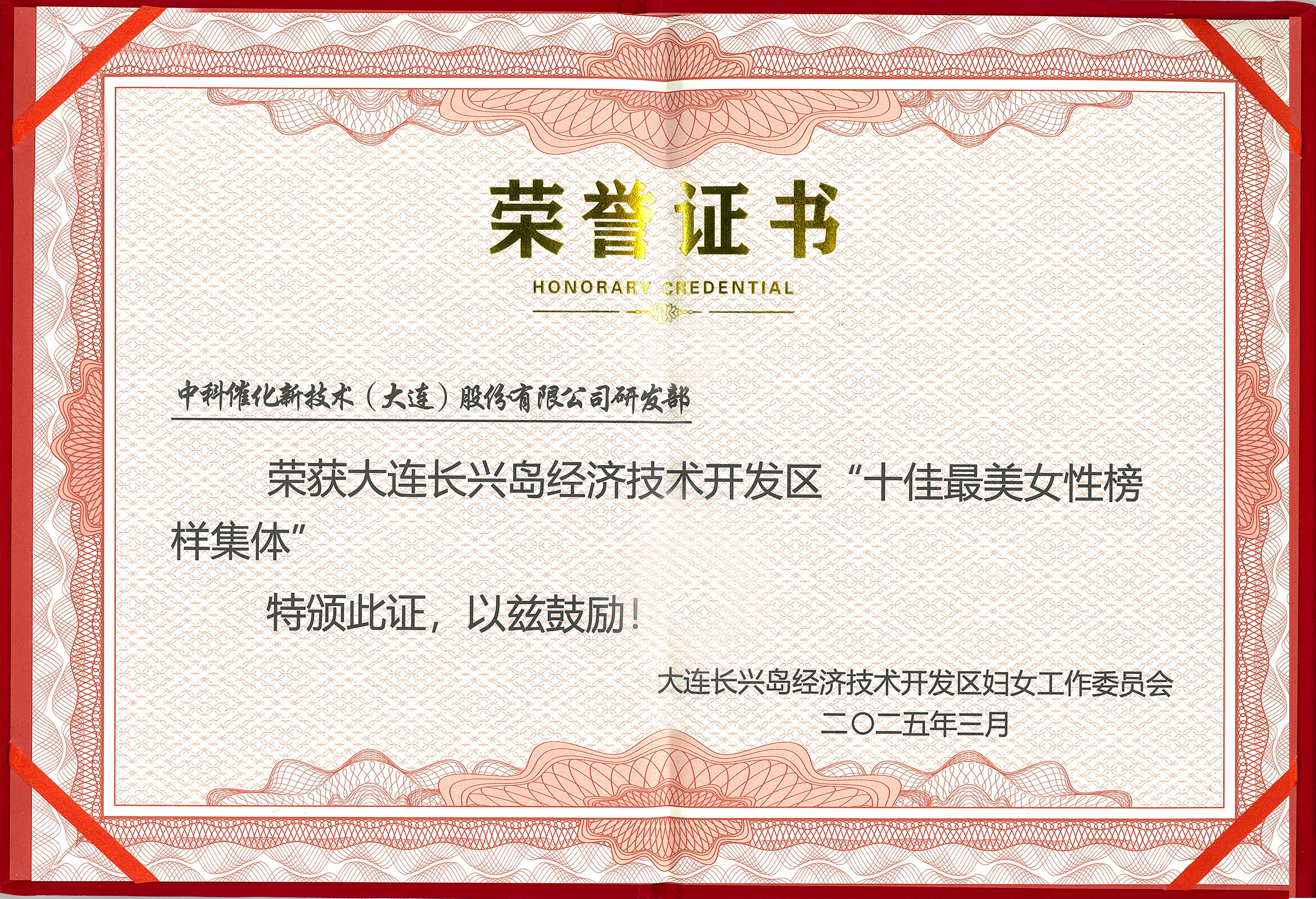 中科催化新技術(shù)(大連)股份有限公司(以下簡稱“中科催化”)受邀參加此次大會(huì)。中科催化研發(fā)部憑借在科技創(chuàng)新與企業(yè)發(fā)展中的卓越表現(xiàn),榮獲大連長興島經(jīng)濟(jì)技術(shù)開發(fā)區(qū)“十佳最美女性榜樣集體”獎(jiǎng)。